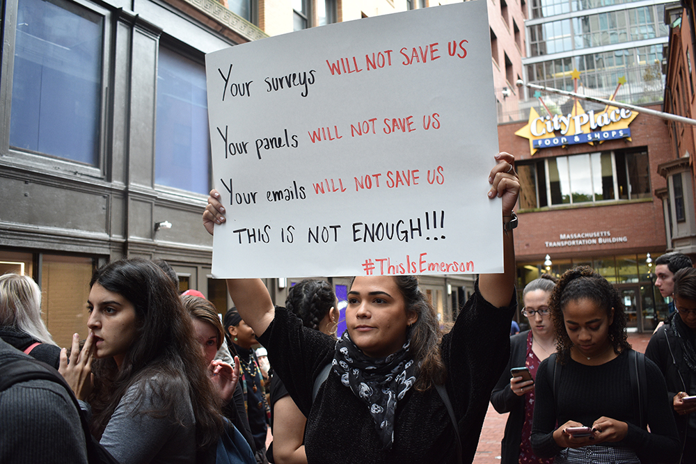 The #ThisIsEmerson protest comes two years after a similar student-led demonstration in the spring of 2015, when several hundred students marched into the final faculty assembly of the year demanding campus-wide cultural competency and sensitivity classes.